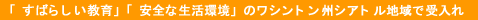 ワシントン州の学校は、美しい自然を取り入れた素晴らしいキャンパスに最新の教育施設を整え最高水準の教育プログラムを多岐の分野において提供しています。