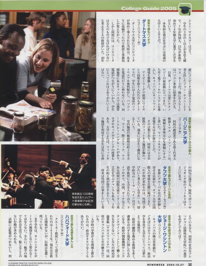 ニューズウィーク誌日本版 2004.10.27 『本当に役立つ世界の大学』